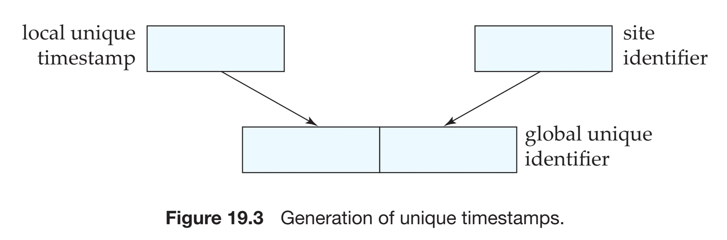 Once unique timestamps are generated, the standard timestamp-based concurrency control protocols (from Chapter 15) can be applied with minimal modifications. Examples: