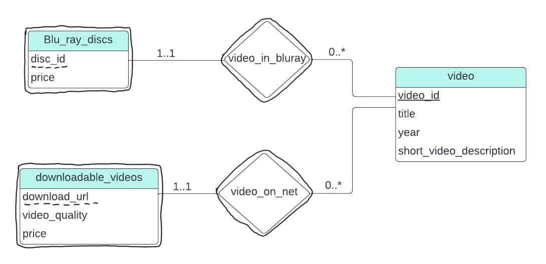 Note that Blu_ray_discs and downloadable_videos are weak entities while
