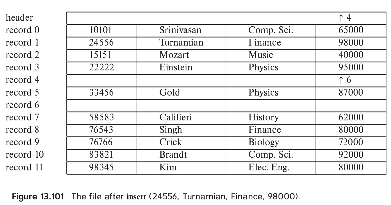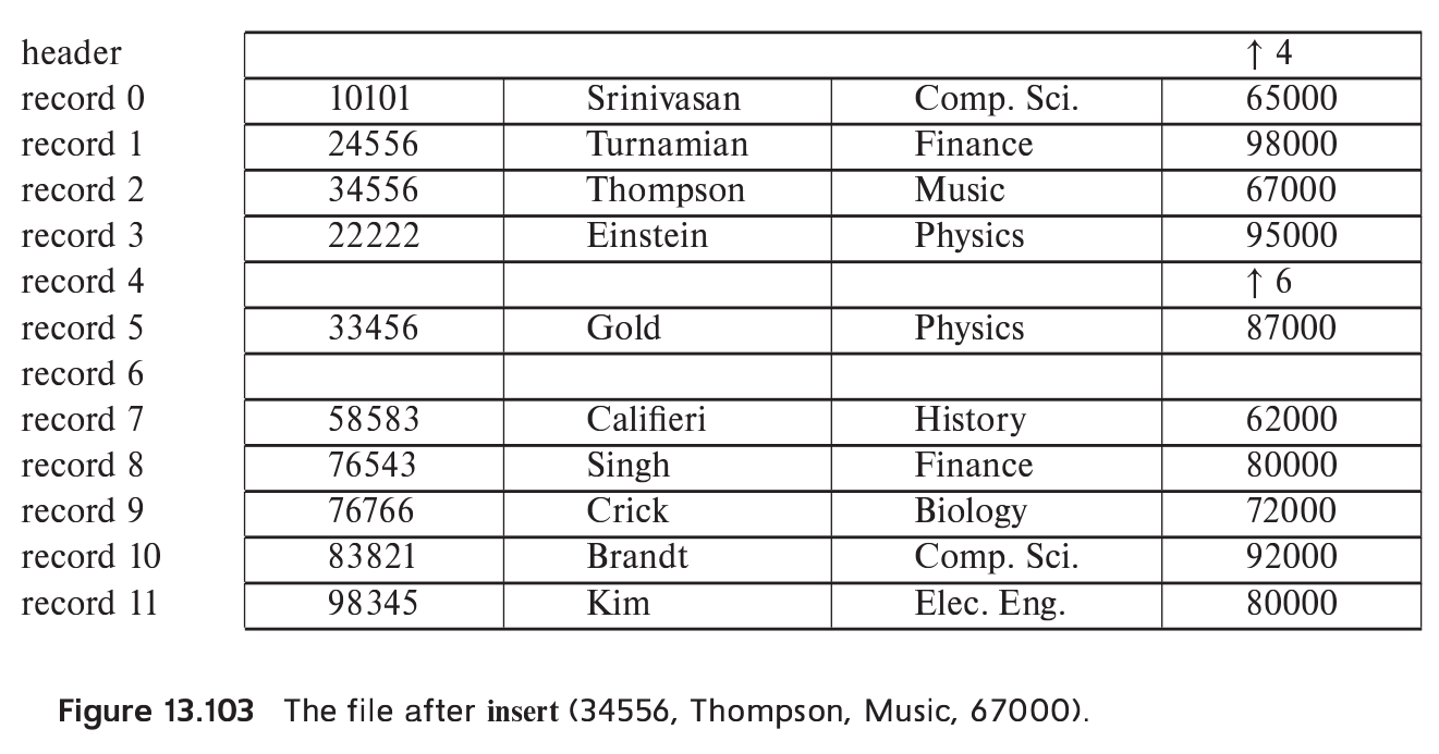 Note that the free record chain could have alternatively been from the header to 4, from 4 to 2, and finally from 2 to 6.