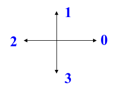- take difference between two consecutive direction number (the latter - the former), and if it is negative, add 4.