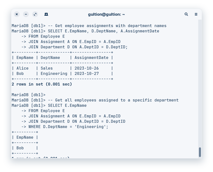 JOIN Assignment A ON E.EmpID = A.EmpID